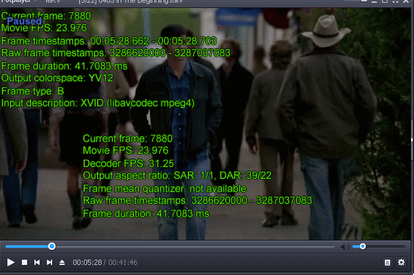 Play an MTS file frame by frame, displaying timecode or frame number