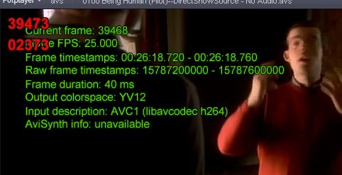 Frame number 39468 according to lower ffdshow, decoding the video for Avisynth