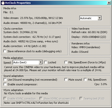 I'm on PAL as well, but i'm not using madVR or ReClock. Any other way to make sure what hertz is being displayed on the TV? Going from the mpc view->Statistics, it doesn show any dropped frames. Except only a few every time the file starts or resumes