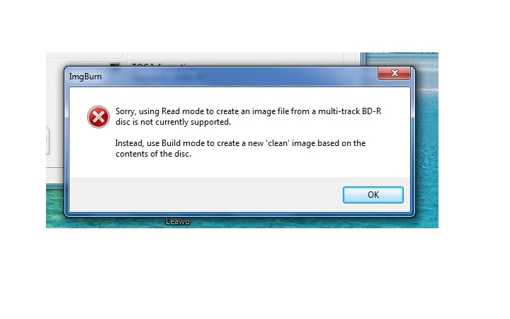 Tried to make an ISO image with ImgBurn, but this is the message I receive when I go on the Read Mode