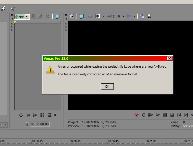My Sony Vegas Pro 13 doesn't open a file I worked on it yesterday!