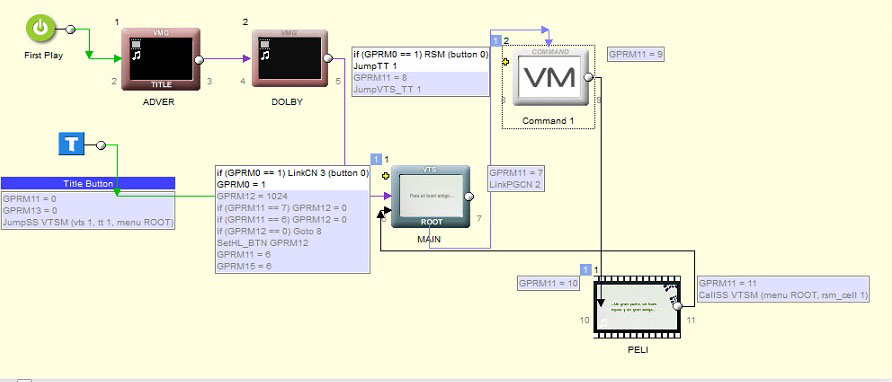 Hello friend _AL_, recently I remember this and I forgot to tell you something about the item 4. I mean only that any title containing the GPRM (5) = (mov) 1, and a summary is made. And I did a test, and if the summary is done (although my project consists of 3 titles). And my question is no longer a need to put more "Jump VTS_TT" because to put that, for example: "(JumpVTS_TT) Jump to TTN 2 in this VTS", automatically my shades on a purple line and seeing other post, I said that was a "dead command," without function. I wonder if there's another way of doing so has no flaws in other DVD players.
