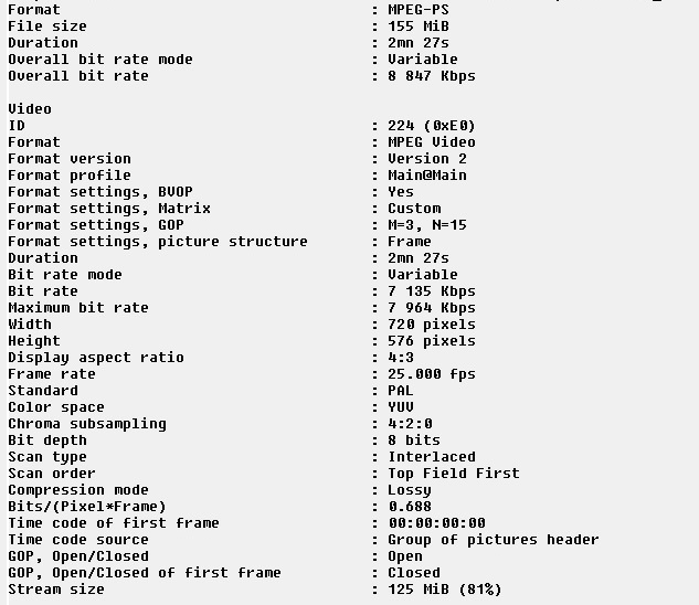 So then in Muxman I just combine / mux to the m2v the whole concert length PCM WAV (about 110 min) and when I mux then demux the PCM WAV time length is 2min:27.36 (the same as 3684 frames), so I didn't cut the WAV of about 110 mins when I added to the m2v as I thought if the WAV is longer than the m2v, it seems the WAV is automatically cut to the length of the m2v..., so I can add a WAV to m2v longer than the m2v and if I demux the audio it's the same length as the m2v!