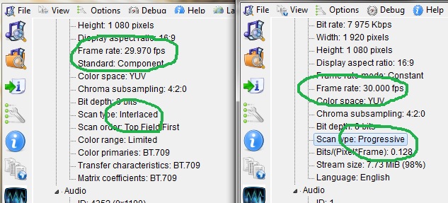 Not entirely sure what you guys mean by the whole 1920x1080 interlacing thingy but I did a quick recording and using MediaInfo - here is what it told me...
