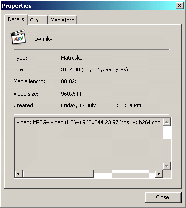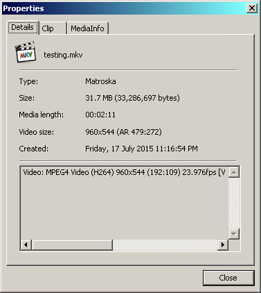 Here's what a 960x544 video with a 1.76 aspect ratio looks like when opened with MPC-HC and after using the File/Properties menu (I just made one for testing, so it'll probably be different to the video in your screenshot):