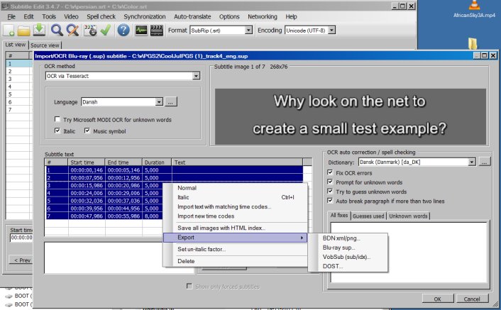 I did try one of my Blu-Rays using OCR. Time consuming and cumbersome because of the limited dictionary, but it was fairly accurate. It would be impossible for me to be accurate with non-English languages, except for names. Nice to know the feature is there, though, if the need for subtitles because it would be useful for highly compressed very low bitrate a/v.