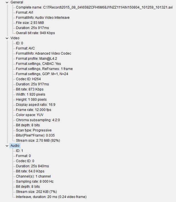 I bought a cheap IP Cam (easyN brand). It saves video/audio as avi. The only way I can hear audio is if I use the builtin video player that comes with the software. I have tried every player on the planet and don't hear audio. There is a codec in the program's installation directory called avcodec-54.dll so I'm guessing that's the one it's using. I'll attach screenshots from gSpot.