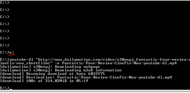Code:youtube-dl "http://www.dailymotion.com/video/x30nnpj_fantastic-four-review-cinefix-now_shortfilms" -o "E:\download\videos\Fantastic-Four-Review-CineFix-Now-youtube-dl.mp4"