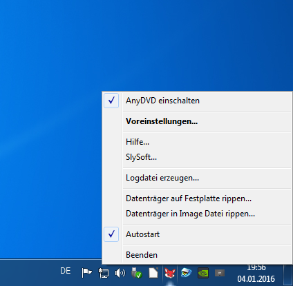 Leider nein, weil ich AnyDVD nicht zu rippen bringe. Der Rechtsklick in der Taskleiste läßt nur das zu, was ich oben geschrieben habe, aber leider nicht das was Du mir empfiehlst. Passt denn meine AnyDVD Version?