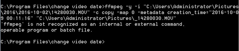 You again have the message that says FFMPEG did not run from "C:\program files\change video date" folder. I'm not sure why it did not run or why you had to put mediainfo.exe into the video folder. Normal path is the program path and then thru each %path% listing. Whatever path your computer is following is not finding it. What version of Windows are you running?