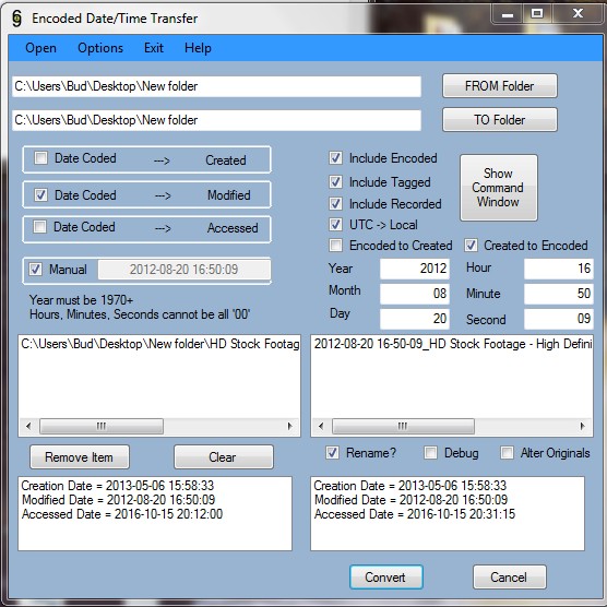 for the latest version link that handles Encoded to Ccreated and Created to Encoded, It will also rename with dates if you wish