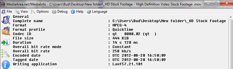 Let me know if these are all correct and mediainfo.exe runs in a dos window by itself and I will try to help more.