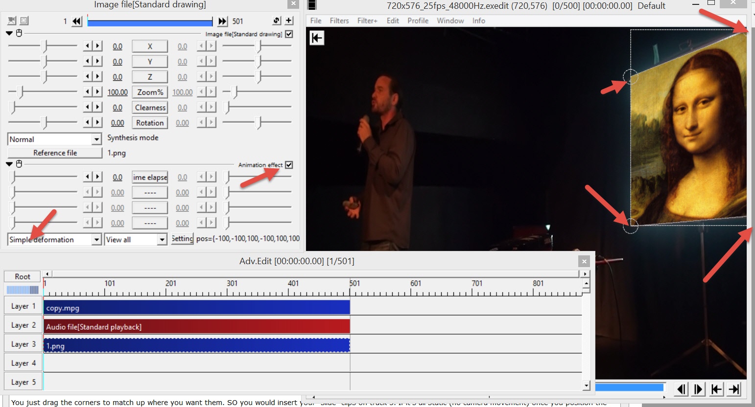BTW "corner pin" effect in aviutl to distort an image is under animation=> simple deformation