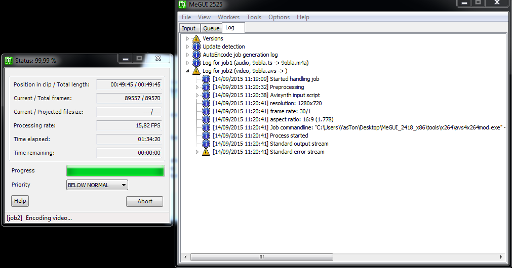 I've got a new error message in MeGUI, when my encode almost finish in the first pass, it shows this error: