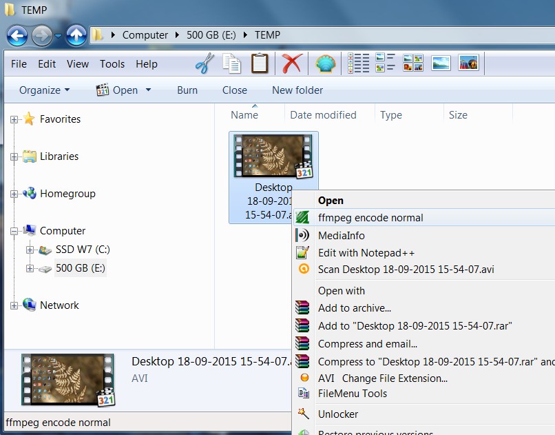 this works fine when the source is a direct .avi file via right-click-send-to