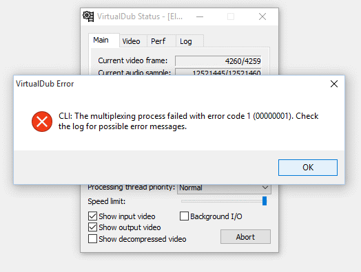 Here's the Virtualdub log[*] Beginning dub operation.