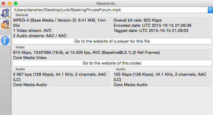 Using SnagIt on MacbookPro, recorded my screen, with my voice through a mic. The resulting MP4 file plays perfectly in SnagIT's viewer and in QuickTime. However, if the video is opened through a browser, no sound. MediaInfo report is in the image below.