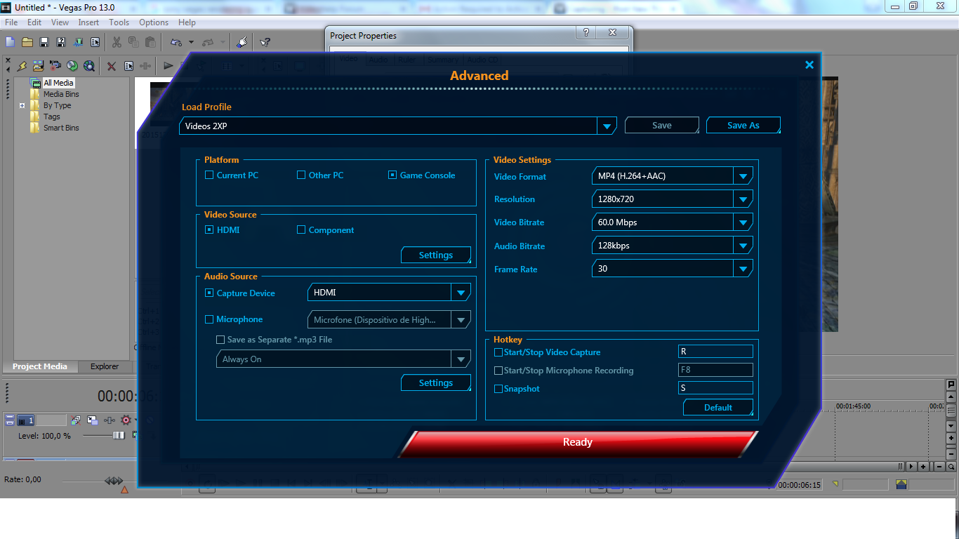 These are the settings used for recording with the Avermedia capture card