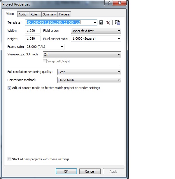 -Vegas project properties (resolution, frame rate, aspect ratio, field order)