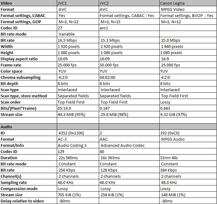The info of the 3 videos differ (analysed by MediaInfo). I am therefore unsure what settings I should use to get the best quality DVD and BluRay disk (Isuppose one will be able to play the BD video by using a memory stick?)