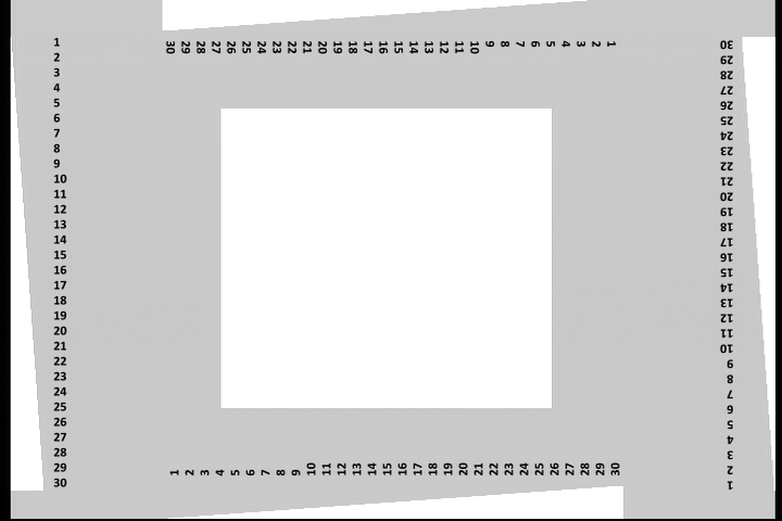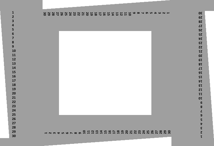 I didn't bother photographing it, but when displaying a similar 704x480 4:3 video with only the white and black lines (ie, the grey borders were removed before making the video) the lines were in exactly the same position and the 8 pixel wide grey borders were replaced with black borders by the player.