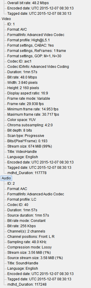 was recorded on samsung s5 4k res, play back on pc is ok via mpc
