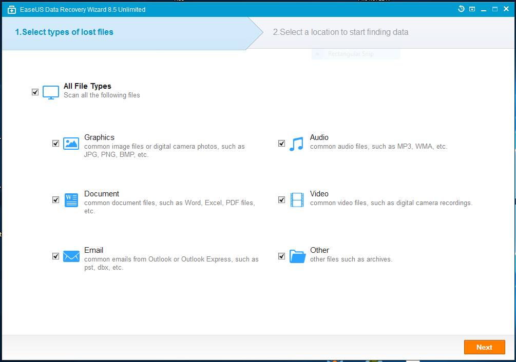 Please run our product again, choose 'Complete Recovery', select the partition or device which you want to recover from, choose the "Option" above and uncheck all the items in the "FAT 12/16/32","NTFS","Common" page, and keep the default setting in "RAW" page, then click "OK" to ensure it, program will return to device list page. Click "Next" to continue. After the "Intelligent Searching", there will be one or more partitions; you can choose the highest suggestion partition. If it doesn't work, please choose more partitions (max 4) at the same time to recover.