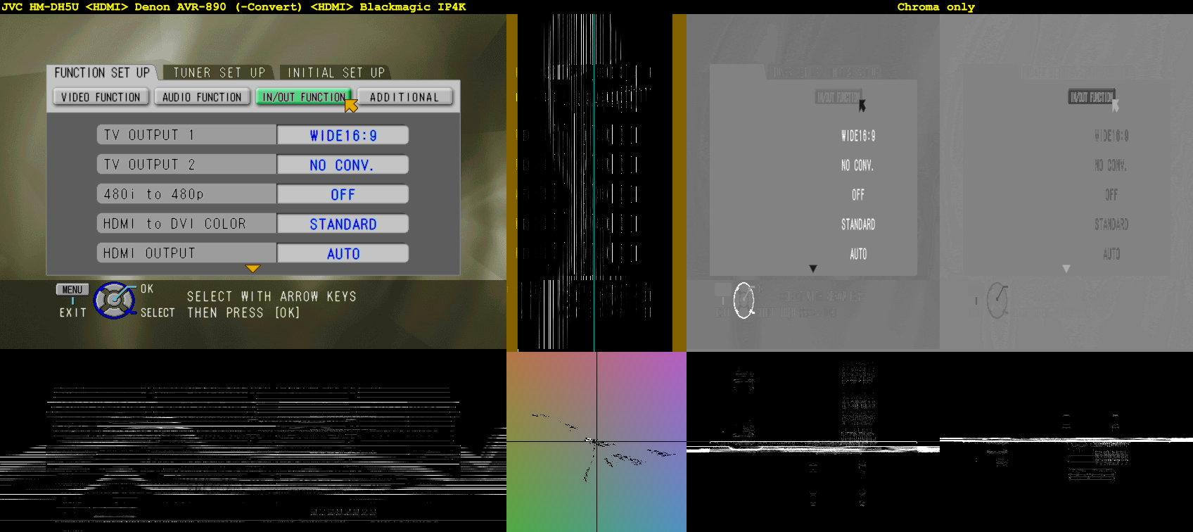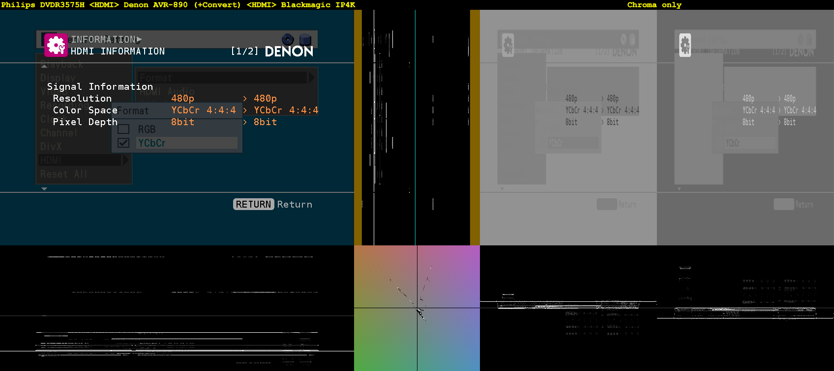 As with the 1080 4:4:4 captures, we see the different chroma downscaling implementations at play. Yet, the IP4K's "V" channel is blurry and horizontally-shifted in the second comparison?![]()