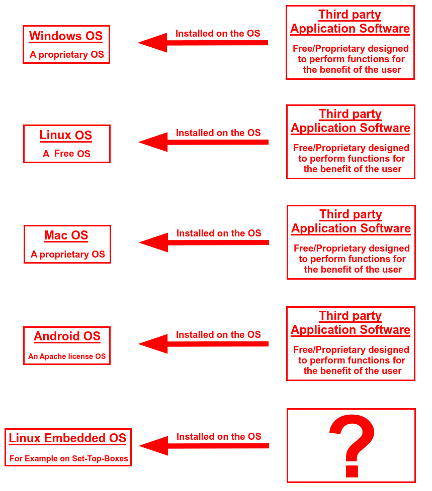 For example: We have third party 'media players' that can be installed on Windows, Linux, Mac, or Android devices. However, for a Set-top-box, there are no third party media players that can be installed on the Set-top-box. Moreover, a media player is already there in the STB, that can replay recorded videos. But alas, it cannot access videos placed on the USB. Knowledgeable members of the forum gave their valuable opinions. And it all came down to Propriety & media rights issues. The STB has been here for decades and it is a wonder that it hasn't evolved much. All it has been doing till now is convert & transmit. A very recent evolution is the ability to record & replay.
