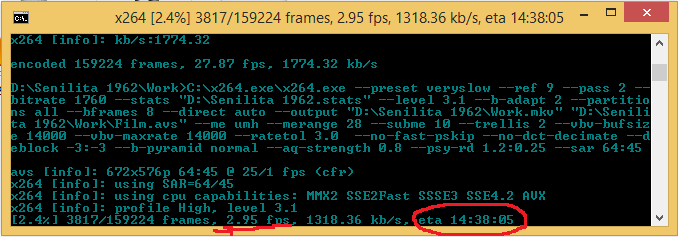 Although I don't put "--slow-firstpass" I get a very slow speed in the second pass about 1fps- 2 and this is a screenshot
