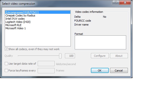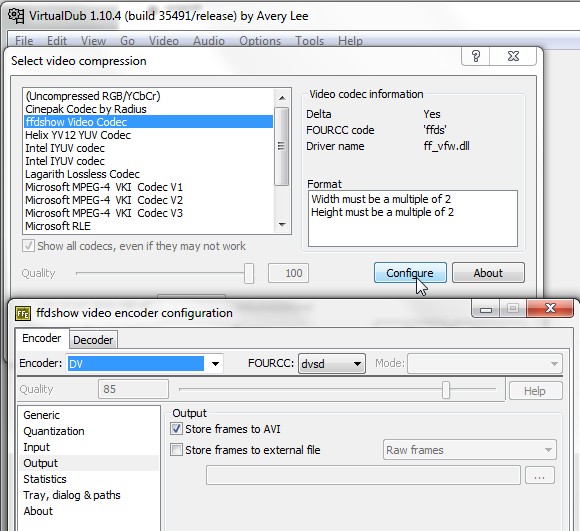 XVID, HUFFY, Lagarith , HQX, ffdshow etc