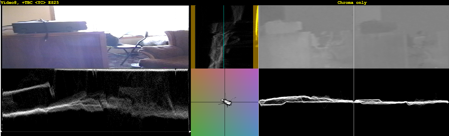 I will try to put samples using a stable svideo signal with test patterns from a dvd player and make an alternative vhs/svhs capture using a jvc svhs set to see if itīs easier to identify if this alternative workflow could have any benefit , namely in reduction Chroma noise, improve color and better levels record adjustment and could in this case be a viable alternative to the conventional workflow.