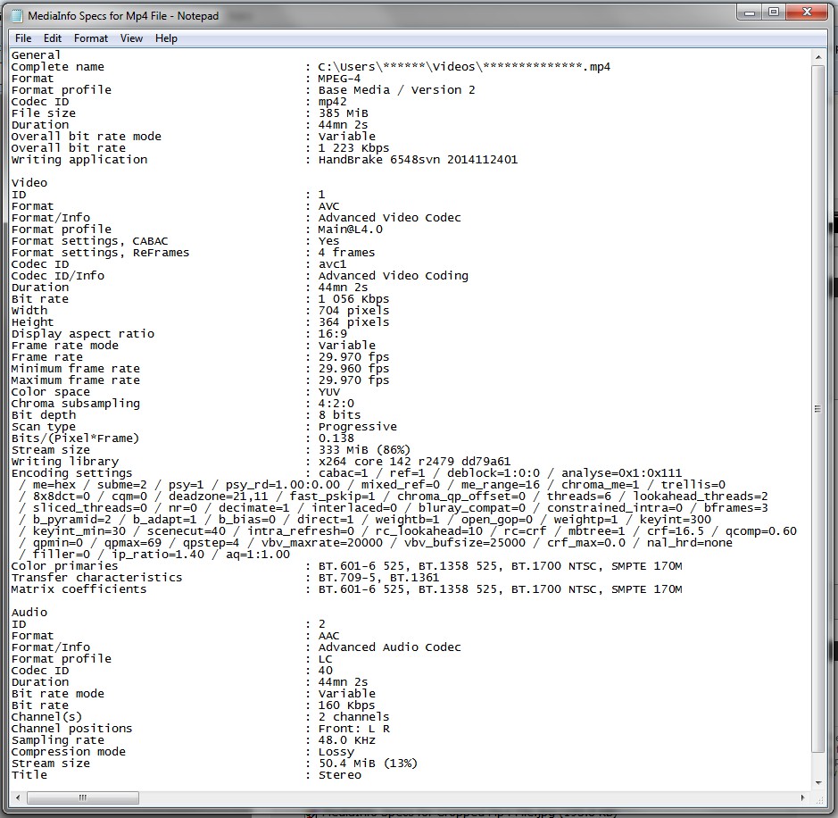 Media Info Specs for Cropped Mp4 File: