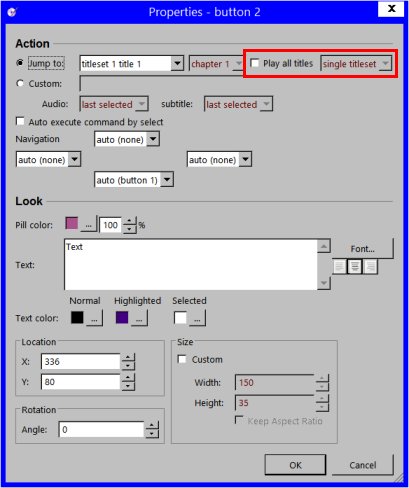 I'm "assuming" DVDauthorGUI can create such a menu. But it seems that when I try this, I can only see one set of "nav" commands - even when I create two menus - one to play all episodes one after the other (then exit) - and another menu to play each episode individually (then jump to menu 2). Can I do what I want to do with DVDauthorGUI? If so, what am I missing? If not, what tool should I use?