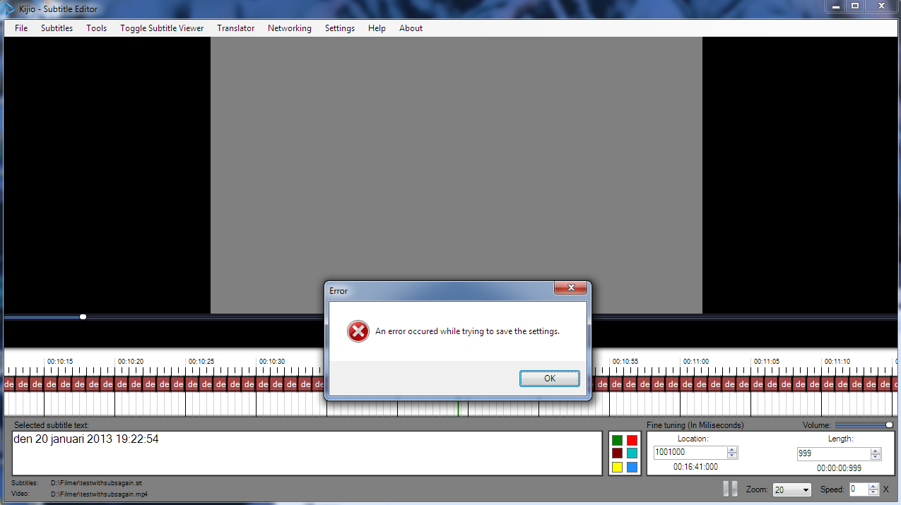 Subtitle Workshop - not creating subtitle at current time location