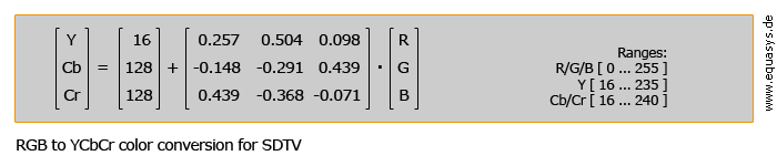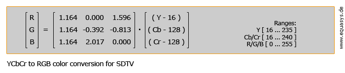 in the matrix. The "equations" won't change, only the constants, and my example would likely still apply because I am working with integer RGB and YUV values versus real values.