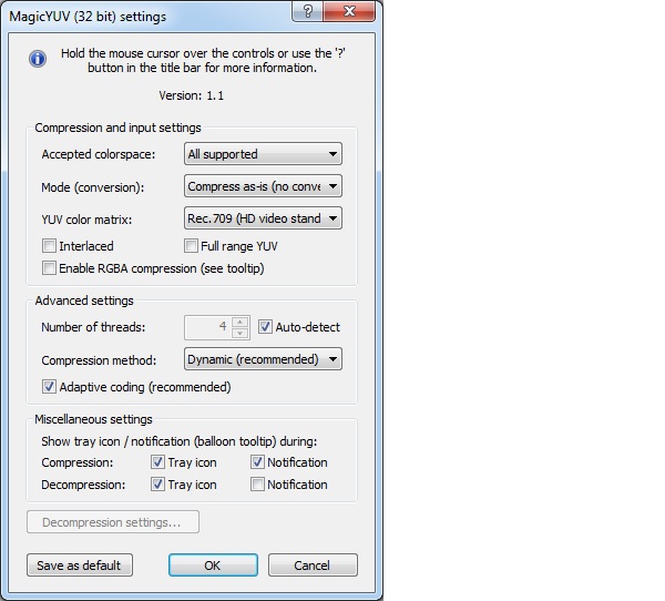 So just want to get the correct settings on MagicYUV .. and if I need to apply any changes in VD prior to this 2nd save happy to do so. -