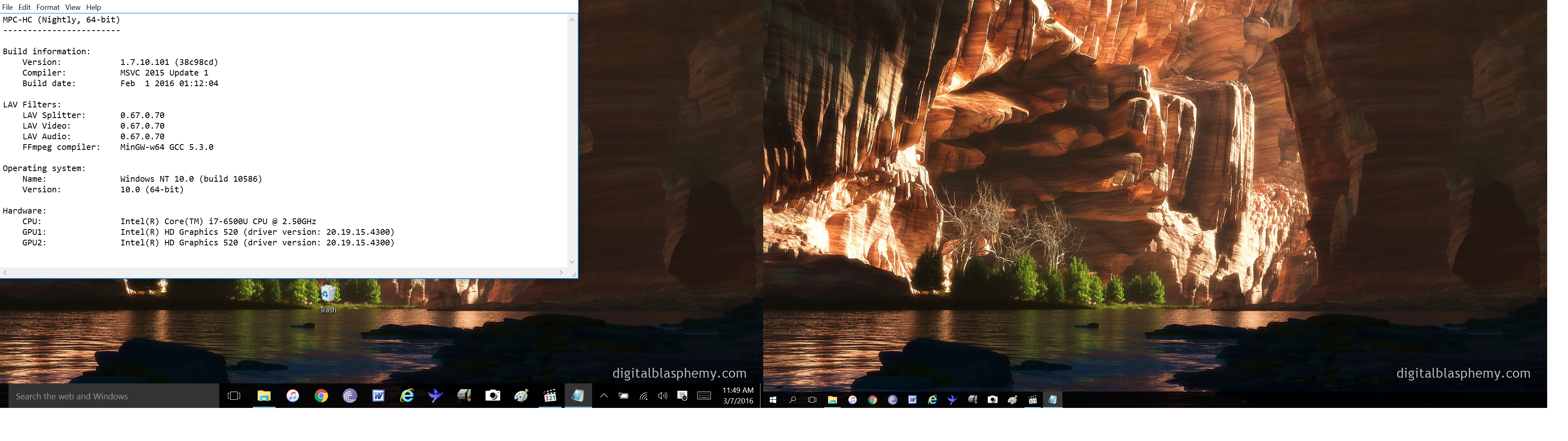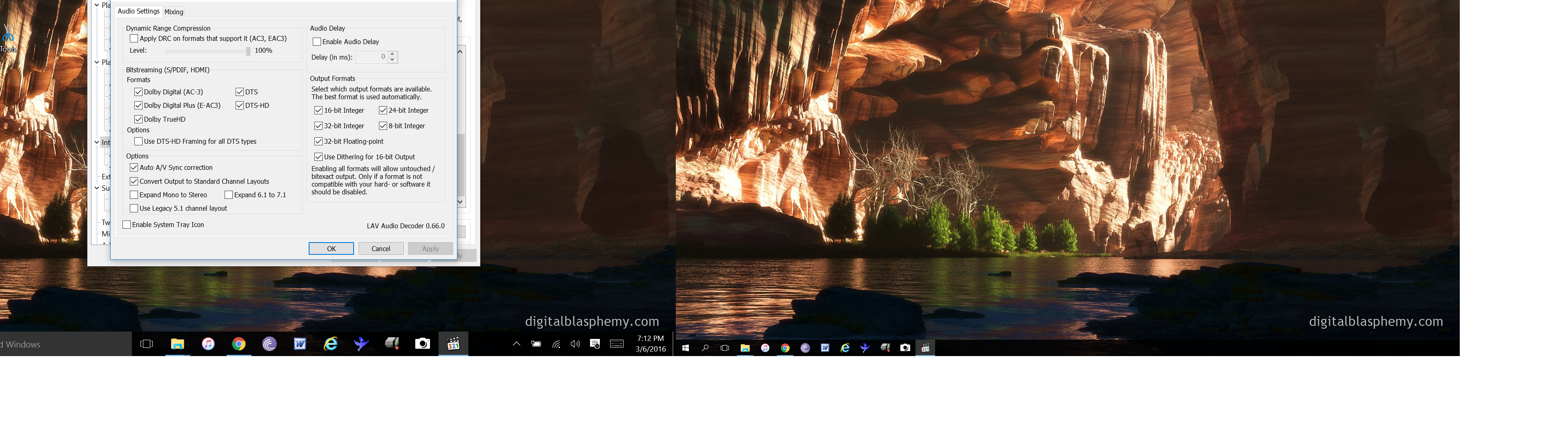 I am not sure what you mean by "same version". I never did anything to MPC. It worked great up until middle of Jan. I will follow your instructions. I installed to dir of MPC/lav. So it installed 2 lav folders. Then I knew that did not look right so I manually cut and paste x64/86 folders and deleted what I thought were old dll. They looked like same file, just newer number. I use HDMI to receiver from PC. Did something happen to cause this? Sorry can't figure out typo- "albeit". So are you saying you have Dts files that utilize your DAES SPEAKERS?