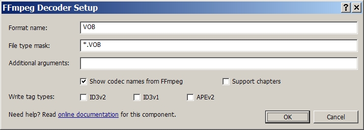 I have .vob selected in the FFMPEG Decoder wrapper.