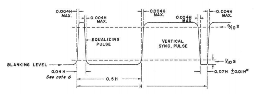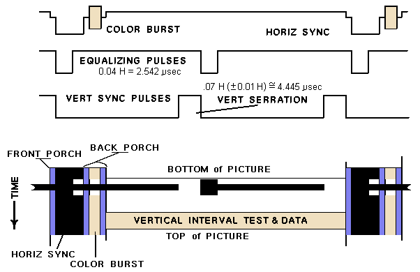 I'm talking about the baseband signal (aka "composite video") here, not the RF broadcast. Specifically, I need to know some info about the VBI, during which their are "equalizing" and "v-sync" pulses (and after these data can be embedded before the first image line).