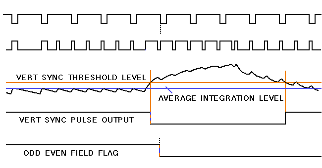 Sync pulses have a long low state, and a short high state.