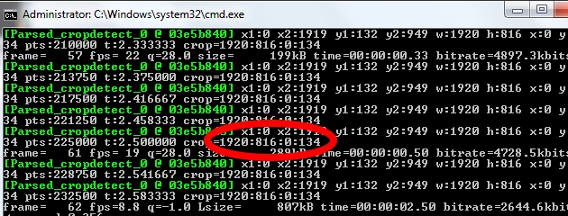 ffmpeg -y -i yourvideo -vf cropdetect -f mp4 NUL