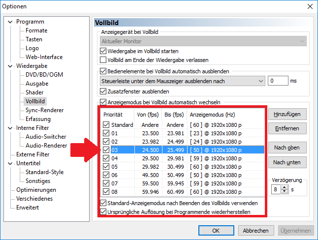 No, that would be awful, click on the checkbox above the red box and click on a refresh rate to change it automatically. The Devs of MPC-HC AND MPC-BE added for me delay timer you can set up to pause playback till refresh rate is done.