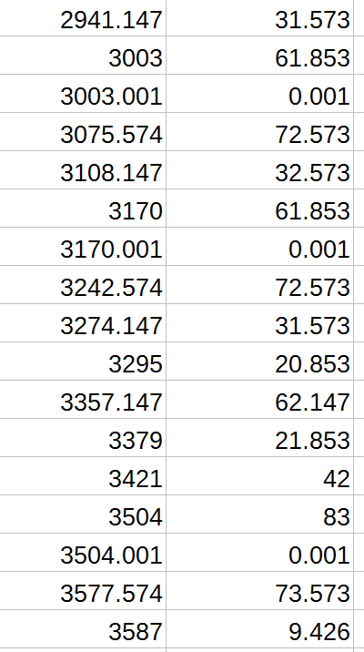 The left column is the raw timecodes in milliseconds. The right column is the delta from the previous timecode.