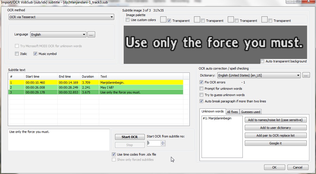Then start the OCR. You may have to play with the 'Custom Colors' but the ones from YAMB seem to work without and changing. Then click okay and save as SRT -