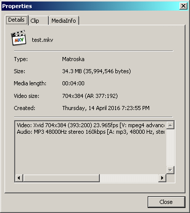 MediaInfo definitely seems to be the odd one out here. Not that it proves it's wrong, but the consensus is something different.Last edited by hello_hello; 14th Apr 2016 at 09:52.