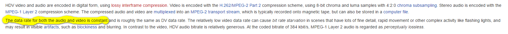 i haven't contradicted myself once. this is the standard HDV template in vegas. don't change anything or you make non-compliant video. get it? it's has to be cbr or it can't go back to tape. i don't know what you are checking the file with but none of them are always accurate. for the last 14 years i've own and run a video production house. the HDV standard hasn't changed in all that time. i'm out. maybe someone else with more knowledge can help you.