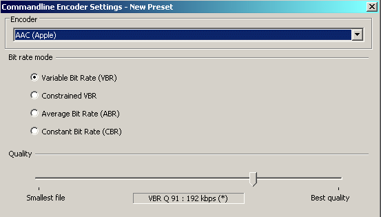 In other words for True Variable Bitrate you're picking a quality but you have no control over the bitrate. For the other modes you're picking a bitrate without knowing what the quality will be. I use TVBR Q91 for everything myself, but the quality you choose is up to you. Obviously a higher quality setting will result in a higher bitrate for any given source.