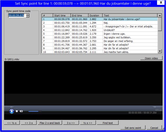 And it is a misunderstanding if you believe the two subtitles when using "Point sync via other subtitle ..." needs to have the same numbers of lines. In your previous case you could sync say 10 lines in the english subtitles based on the timecodes from 8 lines in the thai subtitle. To have the same number of lines in two subtitles is mostly important when importing the time codes from one to the other - and even then you can sometimes get by with different numbers of lines.