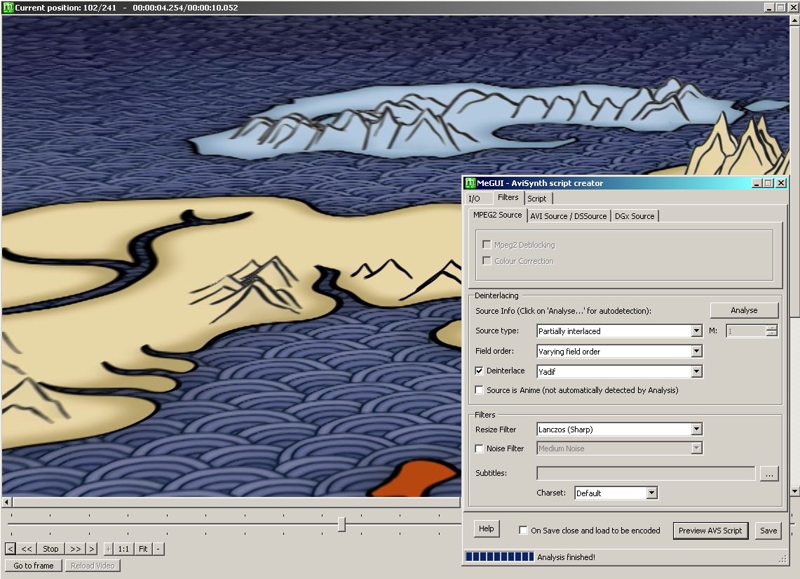 Here it is again opened in MeGUI's preview after MeGUI analysed it and incorrectly decided it was interlaced. Nothing encoded. Just decoded and with de-interlacing enabled: